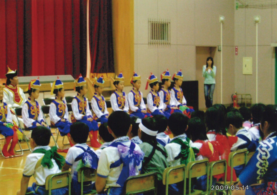 中国・内モンゴルの「小鴻雁芸術学校」の子ども達15人と、先生2人を